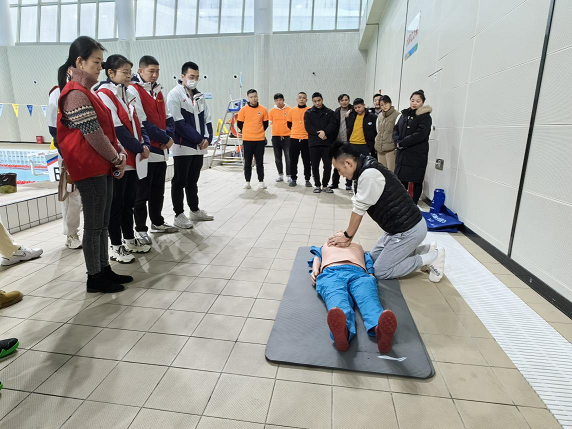 溺水救援演練由體育中心游泳館現(xiàn)場救生隊(duì)員祝明對大家進(jìn)行講解并演示,模擬有人溺水時應(yīng)如何開展救援,詳細(xì)講解急救過程中的順序和技巧,讓在場培訓(xùn)人員運(yùn)用假人模擬急救過程。在模擬之后大家紛紛表示真實(shí)急救與過去聽聞的有著明顯感官差異,清晰了解到了急救的重要意義。